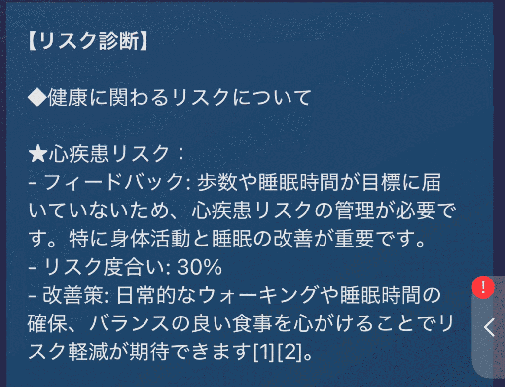 AIが今の状態を判断し、「睡眠を優先しましょう」「歩く時間を増やしましょう」など、健康に近づくためにすべき行動を提案してくれるので、悩まず動けます。