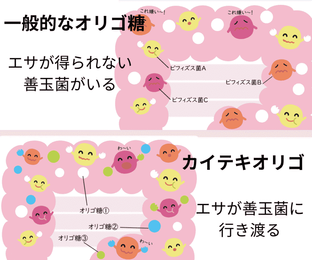 人によって持っている細菌は違うから、5種のオリゴ糖を含むカイテキオリゴは効率がいいんです。
